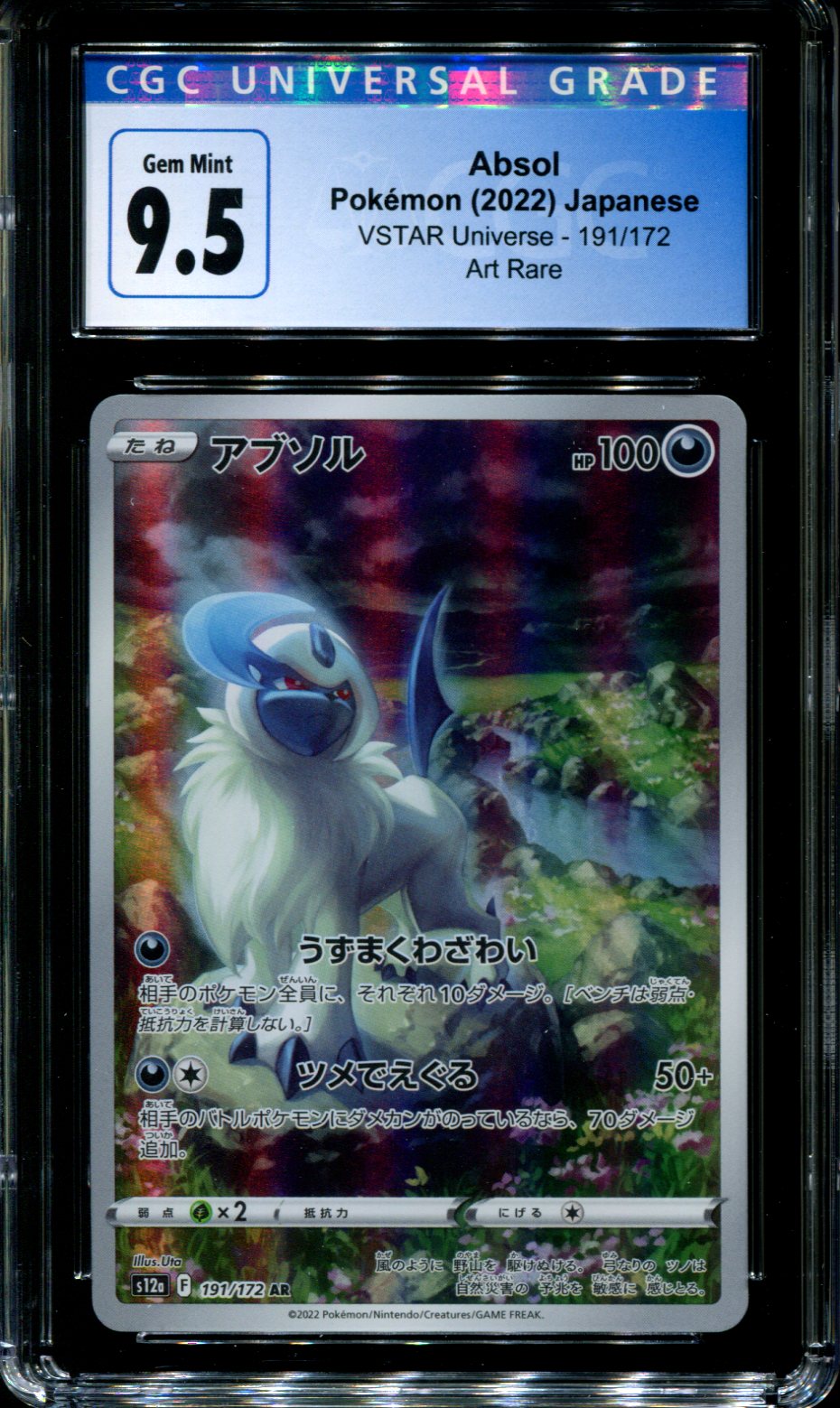 Absol - 191/172 - CGC 9.5 - Art Rare - VSTAR Universe - Pokemon - 56173 VendorCGC Share WhatsApp Deel Tweet Pin it Messenger Email Absol - 191/172 - CGC 9.5 - Art Rare - VSTAR Universe - Pokemon - 56173 VendorCGC Share WhatsApp Deel Tweet Pin it Messenger Email Product form Condition: CGC Graded Out of stock $20.00 Quantity Out of stock This item is a recurring or deferred purchase. By continuing, I agree to the cancellation policy and authorize you to charge my payment method at the prices, frequency and dates listed on this page until my order is fulfilled or I cancel, if permitted.
