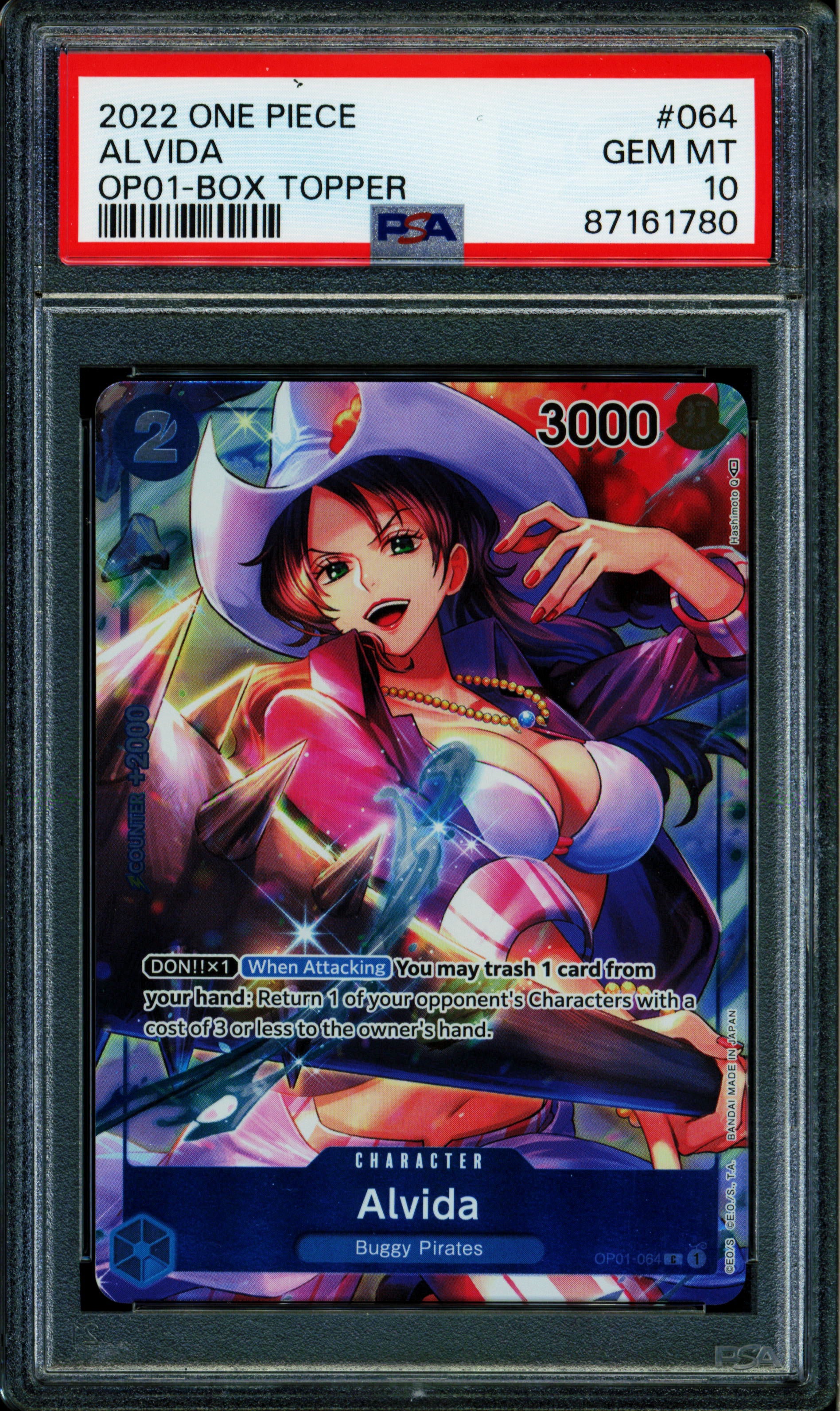 Alvida - OP01-064 - PSA 10 - Box Topper - OP01 - One Piece - 61780 VendorPSA Share WhatsApp Deel Tweet Pin it Messenger Email Alvida - OP01-064 - PSA 10 - Box Topper - OP01 - One Piece - 61780 VendorPSA Share WhatsApp Deel Tweet Pin it Messenger Email Product form Condition: PSA Graded Out of stock $50.00 Quantity Out of stock This item is a recurring or deferred purchase. By continuing, I agree to the cancellation policy and authorize you to charge my payment method at the prices, frequency and dates listed on this page until my order is fulfilled or I cancel, if permitted.