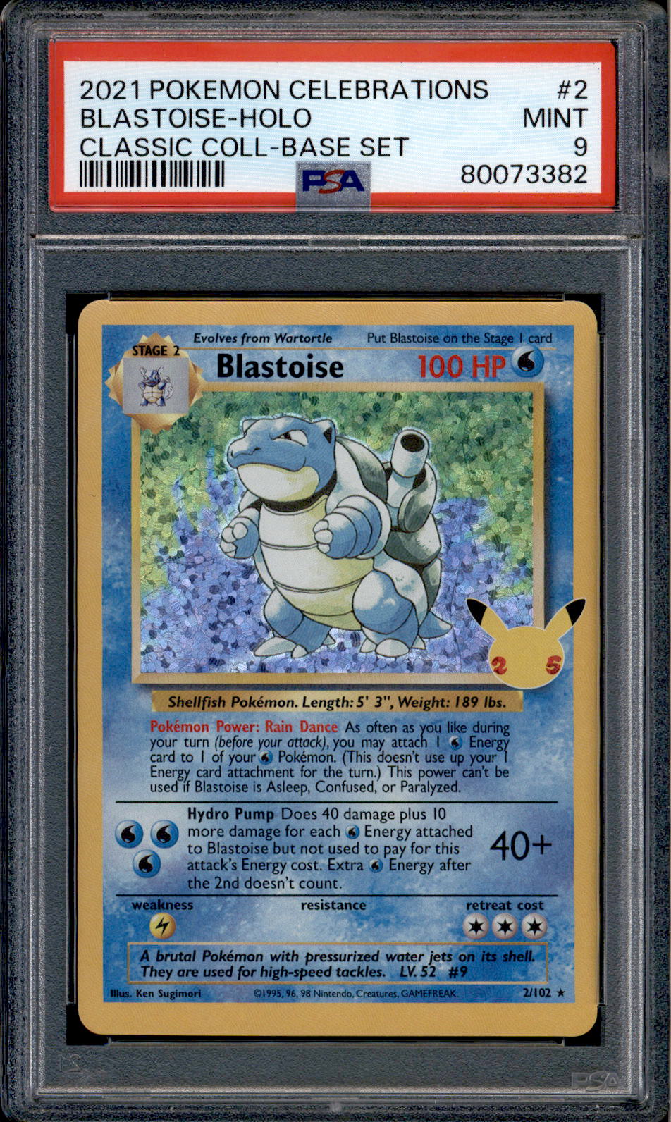 Blastoise - 2/102 - PSA 9 - Holo - Celebrations - Pokemon - 73382 VendorPSA Share WhatsApp Deel Tweet Pin it Messenger Email Blastoise - 2/102 - PSA 9 - Holo - Celebrations - Pokemon - 73382 VendorPSA Share WhatsApp Deel Tweet Pin it Messenger Email Product form Condition: PSA Graded Out of stock $20.00 Quantity Out of stock This item is a recurring or deferred purchase. By continuing, I agree to the cancellation policy and authorize you to charge my payment method at the prices, frequency and dates listed on this page until my order is fulfilled or I cancel, if permitted.