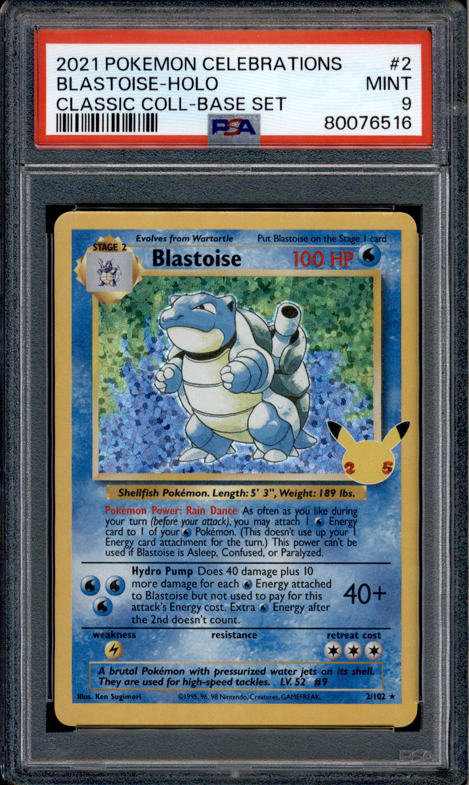 Blastoise - 2/102 - PSA 9 - Holo - Celebrations - Pokemon - 76516 VendorPSA Share WhatsApp Deel Tweet Pin it Messenger Email Blastoise - 2/102 - PSA 9 - Holo - Celebrations - Pokemon - 76516 VendorPSA Share WhatsApp Deel Tweet Pin it Messenger Email Product form Condition: PSA Graded Out of stock $25.00 Quantity Out of stock This item is a recurring or deferred purchase. By continuing, I agree to the cancellation policy and authorize you to charge my payment method at the prices, frequency and dates listed on this page until my order is fulfilled or I cancel, if permitted.