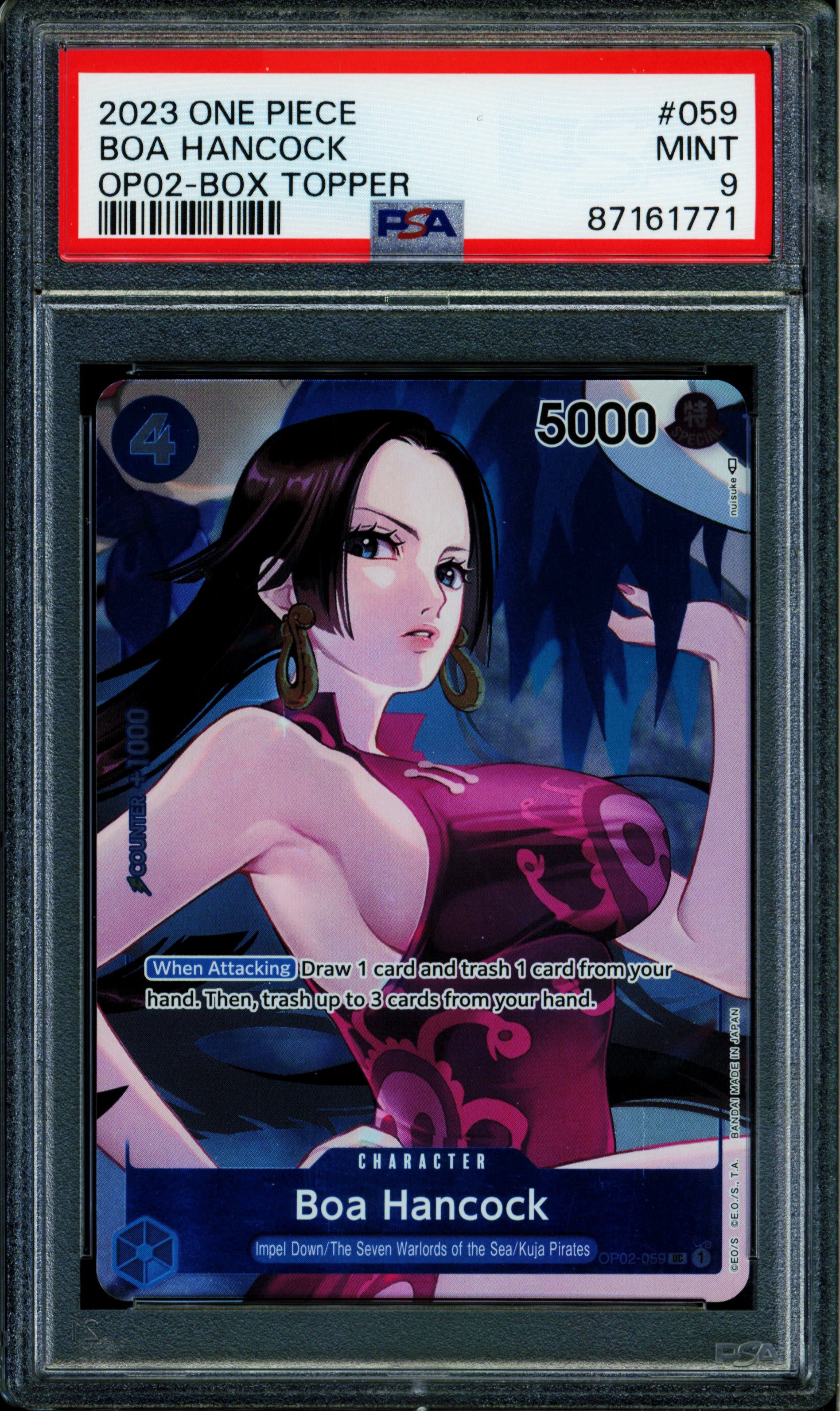 Boa Hancock - OP02-059 - PSA 9 - Box Topper - OP02 - One Piece - 61771 VendorPSA Share WhatsApp Deel Tweet Pin it Messenger Email Boa Hancock - OP02-059 - PSA 9 - Box Topper - OP02 - One Piece - 61771 VendorPSA Share WhatsApp Deel Tweet Pin it Messenger Email Product form Condition: PSA Graded Out of stock $20.00 Quantity Out of stock This item is a recurring or deferred purchase. By continuing, I agree to the cancellation policy and authorize you to charge my payment method at the prices, frequency and dates listed on this page until my order is fulfilled or I cancel, if permitted.