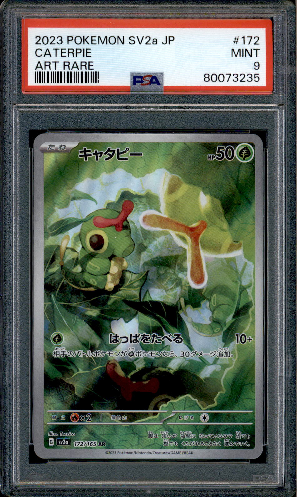 Caterpie - 172/165 - PSA 9 - AR - 151 - Pokemon - 73235 VendorPSA Share WhatsApp Deel Tweet Pin it Messenger Email Caterpie - 172/165 - PSA 9 - AR - 151 - Pokemon - 73235 VendorPSA Share WhatsApp Deel Tweet Pin it Messenger Email Product form Condition: PSA Graded Out of stock $15.00 Quantity Out of stock This item is a recurring or deferred purchase. By continuing, I agree to the cancellation policy and authorize you to charge my payment method at the prices, frequency and dates listed on this page until my order is fulfilled or I cancel, if permitted.