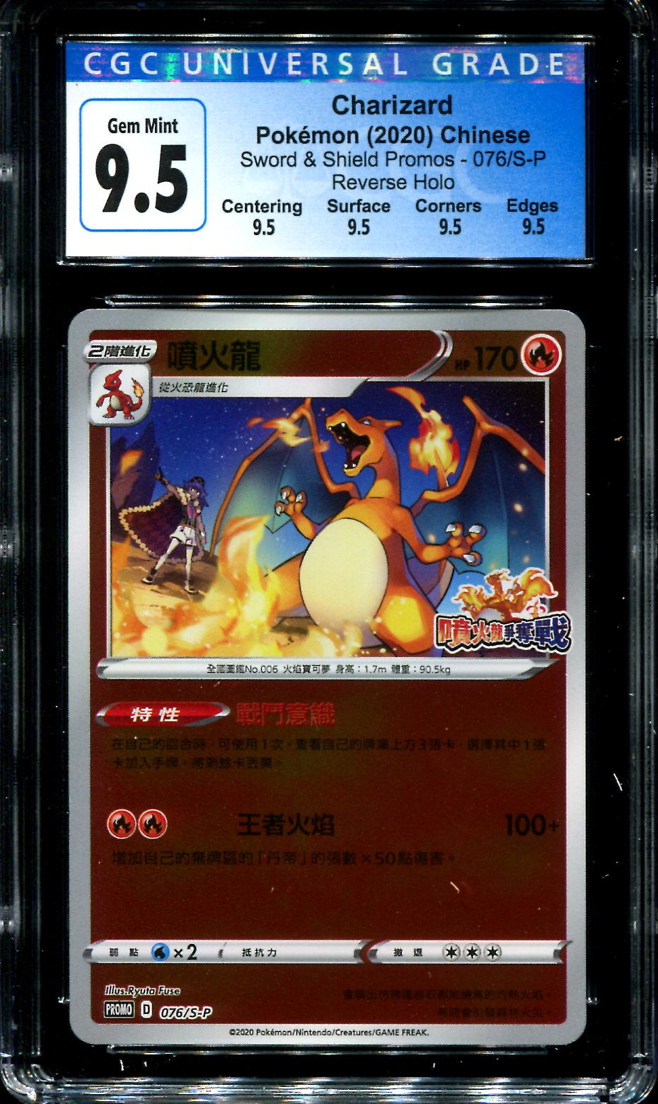 Charizard - 076/S-P - CGC 9.5 - Competition Battle Promo - Chinese - Pokemon - 56011 VendorCGC Share WhatsApp Deel Tweet Pin it Messenger Email Last stock! Charizard - 076/S-P - CGC 9.5 - Competition Battle Promo - Chinese - Pokemon - 56011 VendorCGC Share WhatsApp Deel Tweet Pin it Messenger Email Product form Condition: CGC Graded 1 in stock $20.00 Quantity Add to cart This item is a recurring or deferred purchase. By continuing, I agree to the cancellation policy and authorize you to charge my payment method at the prices, frequency and dates listed on this page until my order is fulfilled or I cancel, if permitted.