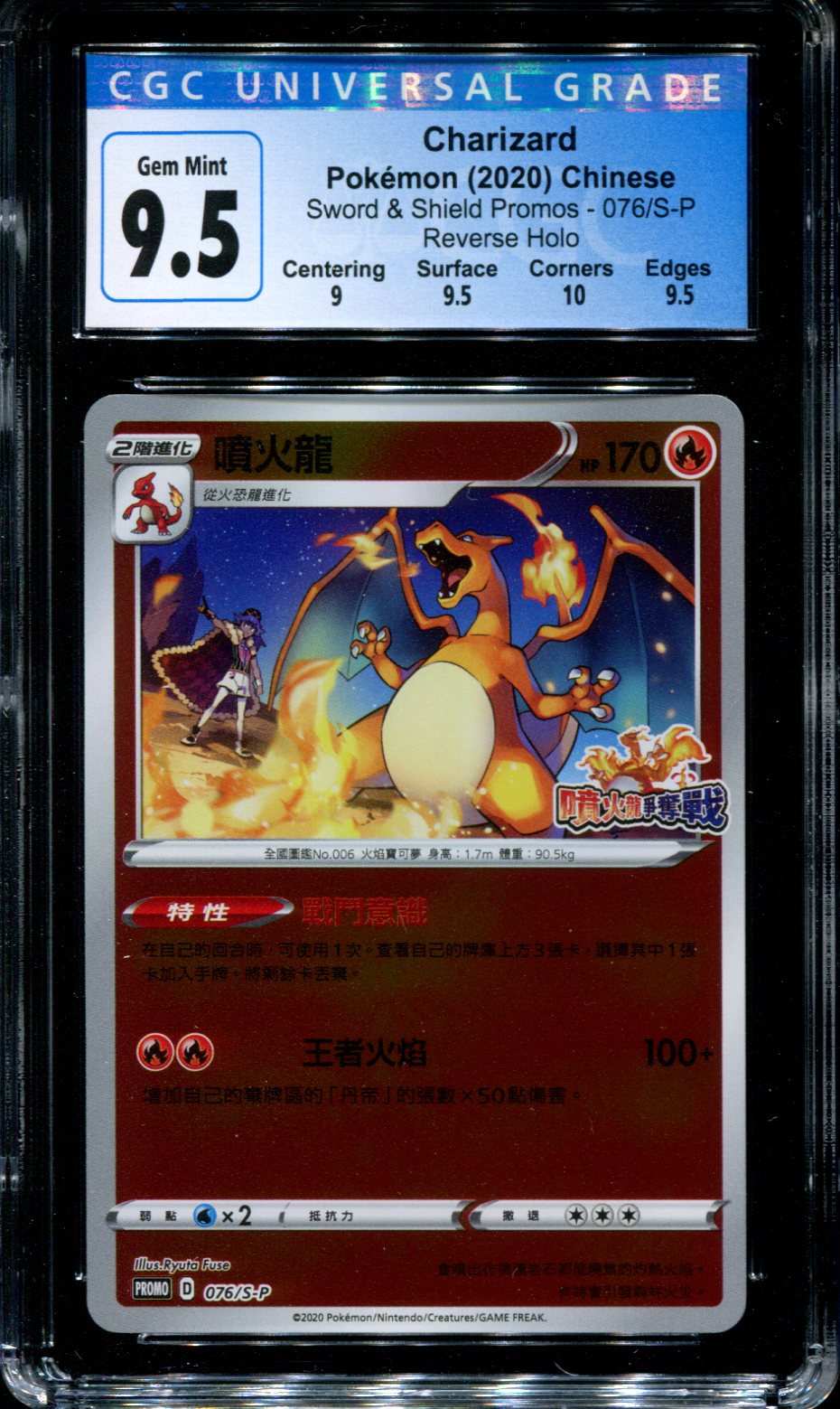 Charizard - 076/S-P - CGC 9.5 - Competition Battle Promo - Chinese - Pokemon - 56022 VendorCGC Share WhatsApp Deel Tweet Pin it Messenger Email Last stock! Charizard - 076/S-P - CGC 9.5 - Competition Battle Promo - Chinese - Pokemon - 56022 VendorCGC Share WhatsApp Deel Tweet Pin it Messenger Email Product form Condition: CGC Graded 1 in stock $20.00 Quantity Add to cart This item is a recurring or deferred purchase. By continuing, I agree to the cancellation policy and authorize you to charge my payment method at the prices, frequency and dates listed on this page until my order is fulfilled or I cancel, if permitted.