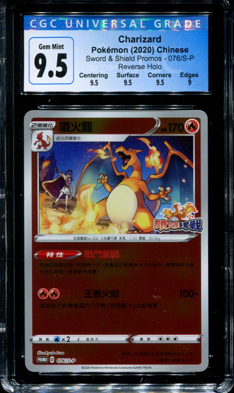 Charizard - 076/S-P - CGC 9.5 - Competition Battle Promo - Chinese - Pokemon - 56026 VendorCGC Share WhatsApp Deel Tweet Pin it Messenger Email Last stock! Charizard - 076/S-P - CGC 9.5 - Competition Battle Promo - Chinese - Pokemon - 56026 VendorCGC Share WhatsApp Deel Tweet Pin it Messenger Email Product form Condition: CGC Graded 1 in stock $20.00 Quantity Add to cart This item is a recurring or deferred purchase. By continuing, I agree to the cancellation policy and authorize you to charge my payment method at the prices, frequency and dates listed on this page until my order is fulfilled or I cancel, if permitted.