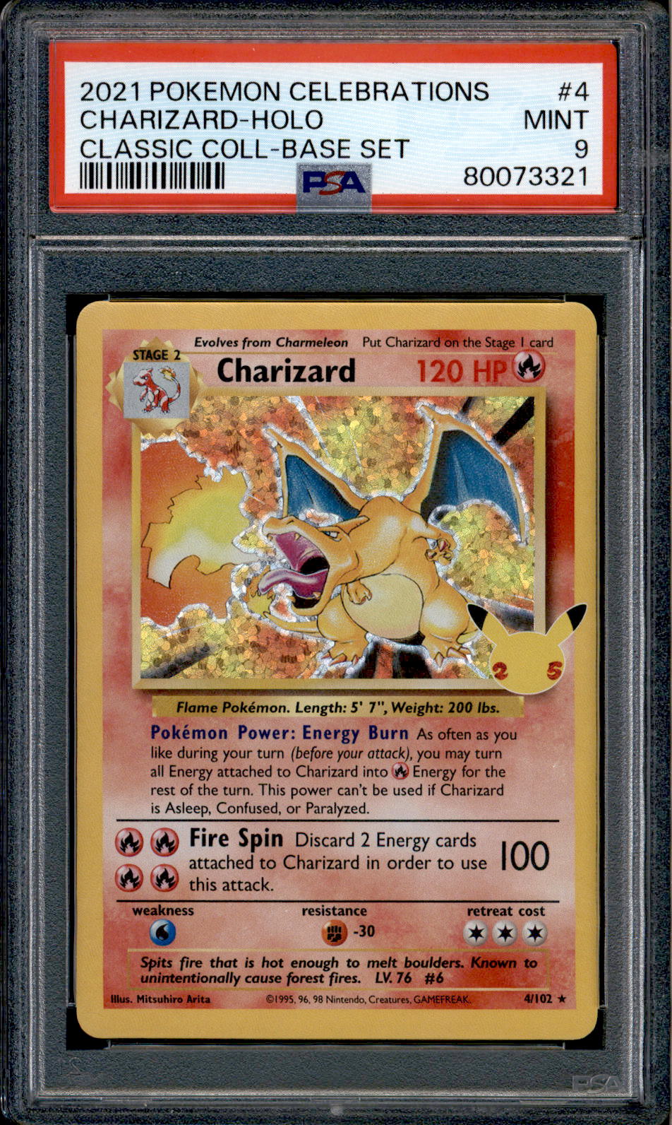 Charizard - 4/102 - PSA 9 - Holo - Celebrations - Pokemon - 73321 VendorPSA Share WhatsApp Deel Tweet Pin it Messenger Email Charizard - 4/102 - PSA 9 - Holo - Celebrations - Pokemon - 73321 VendorPSA Share WhatsApp Deel Tweet Pin it Messenger Email Product form Condition: PSA Graded Out of stock $90.00 Quantity Out of stock This item is a recurring or deferred purchase. By continuing, I agree to the cancellation policy and authorize you to charge my payment method at the prices, frequency and dates listed on this page until my order is fulfilled or I cancel, if permitted.