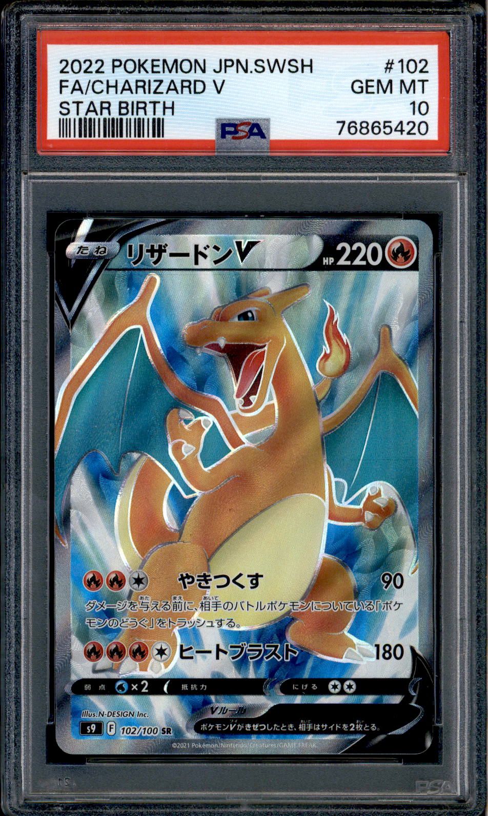 Charizard V - 102/100 - PSA 10 - SR Full Art - Star Birth - Pokemon - 65420 VendorPSA Share WhatsApp Deel Tweet Pin it Messenger Email Charizard V - 102/100 - PSA 10 - SR Full Art - Star Birth - Pokemon - 65420 VendorPSA Share WhatsApp Deel Tweet Pin it Messenger Email Product form Condition: PSA Graded Out of stock $55.00 Quantity Out of stock This item is a recurring or deferred purchase. By continuing, I agree to the cancellation policy and authorize you to charge my payment method at the prices, frequency and dates listed on this page until my order is fulfilled or I cancel, if permitted.