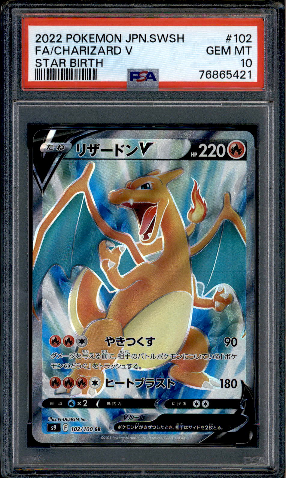 Charizard V - 102/100 - PSA 10 - SR Full Art - Star Birth - Pokemon - 65421 VendorPSA Share WhatsApp Deel Tweet Pin it Messenger Email Charizard V - 102/100 - PSA 10 - SR Full Art - Star Birth - Pokemon - 65421 VendorPSA Share WhatsApp Deel Tweet Pin it Messenger Email Product form Condition: PSA Graded Out of stock $55.00 Quantity Out of stock This item is a recurring or deferred purchase. By continuing, I agree to the cancellation policy and authorize you to charge my payment method at the prices, frequency and dates listed on this page until my order is fulfilled or I cancel, if permitted.