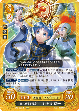 Prayer to Bragi [ ] Choose 1 non-"Charlot" card from your Retreat Area, and add it to your hand. Until the end of the turn, this unit gains +20 attack. |