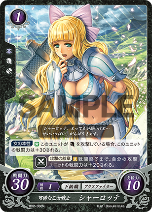 Charlotte: Sweet Warrior Maiden - B02-086N - Fire Emblem Cipher 02 VendorIntelligent Systems Share WhatsApp Deel Tweet Pin it Messenger Email Charlotte: Sweet Warrior Maiden - B02-086N - Fire Emblem Cipher 02 VendorIntelligent Systems Share WhatsApp Deel Tweet Pin it Messenger Email Product form Condition: Near Mint Out of stock $0.99 Quantity Out of stock This item is a recurring or deferred purchase. By continuing, I agree to the cancellation policy and authorize you to charge my payment method at the prices, frequency and dates listed on this page until my order is fulfilled or I cancel, if permitted.