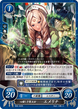 Heal [ , ] Choose 1 non-"Emmeryn" card from your Retreat Area, and add it to your hand. |