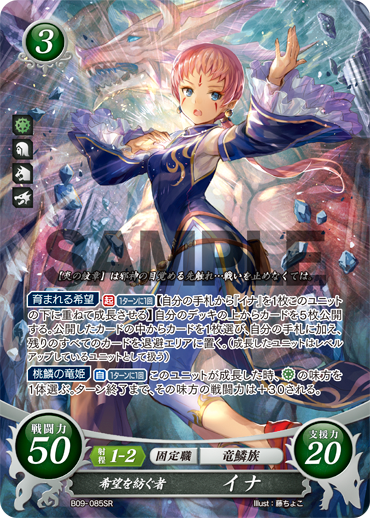 Nurture a Wish [Stack 1 "Ena" card from your hand underneath this unit to Growth them] Reveal the top 5 cards of your Deck. Choose 1 of the revealed cards, add it to your hand, then send the remaining cards to your Retreat Area. (A Growthed unit is treated as if it is Leveled Up.) |
