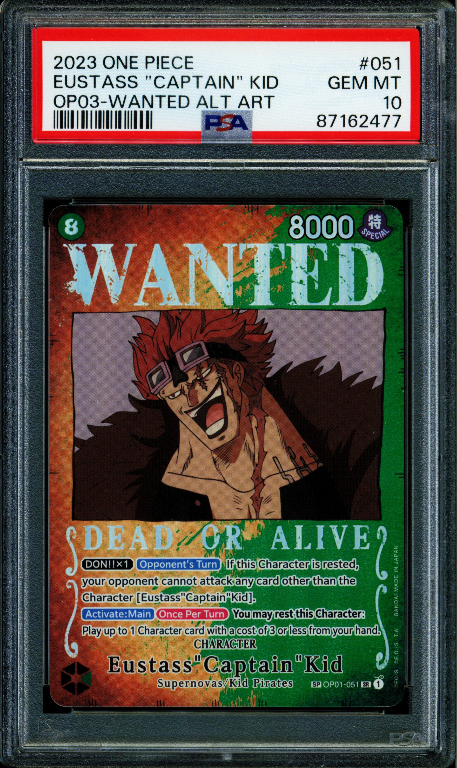 Eustass Captain Kid - OP01-051 - PSA 10 - Alt Art Wanted - English - One Piece - 624 VendorPSA Share WhatsApp Deel Tweet Pin it Messenger Email Eustass Captain Kid - OP01-051 - PSA 10 - Alt Art Wanted - English - One Piece - 624 VendorPSA Share WhatsApp Deel Tweet Pin it Messenger Email Product form Condition: PSA Graded Out of stock $100.00 Quantity Out of stock This item is a recurring or deferred purchase. By continuing, I agree to the cancellation policy and authorize you to charge my payment method at the prices, frequency and dates listed on this page until my order is fulfilled or I cancel, if permitted.