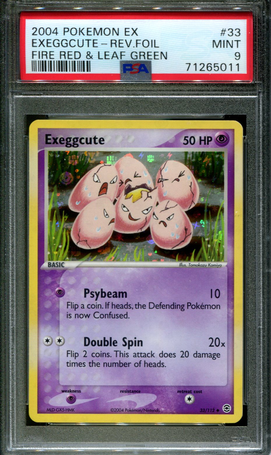 Exeggcute - 33/112 - PSA 9 - Reverse Holo - FRLG - Pokemon - 65011 VendorPSA Share WhatsApp Deel Tweet Pin it Messenger Email Exeggcute - 33/112 - PSA 9 - Reverse Holo - FRLG - Pokemon - 65011 VendorPSA Share WhatsApp Deel Tweet Pin it Messenger Email Product form Condition: PSA Graded Out of stock $40.00 Quantity Out of stock This item is a recurring or deferred purchase. By continuing, I agree to the cancellation policy and authorize you to charge my payment method at the prices, frequency and dates listed on this page until my order is fulfilled or I cancel, if permitted.