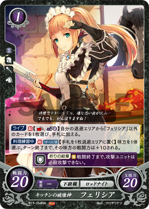 Heal [ , ] Choose 1 non-"Felicia" card from your Retreat Area, and add it to your hand. |