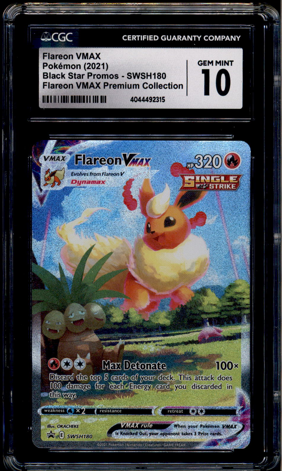 Flareon Vmax - SWSH180 - CGC 10 - Alt Art - Promo - Pokemon - 92315 VendorCGC Share WhatsApp Deel Tweet Pin it Messenger Email Flareon Vmax - SWSH180 - CGC 10 - Alt Art - Promo - Pokemon - 92315 VendorCGC Share WhatsApp Deel Tweet Pin it Messenger Email Product form Condition: CGC Graded Out of stock $150.00 Quantity Out of stock This item is a recurring or deferred purchase. By continuing, I agree to the cancellation policy and authorize you to charge my payment method at the prices, frequency and dates listed on this page until my order is fulfilled or I cancel, if permitted.