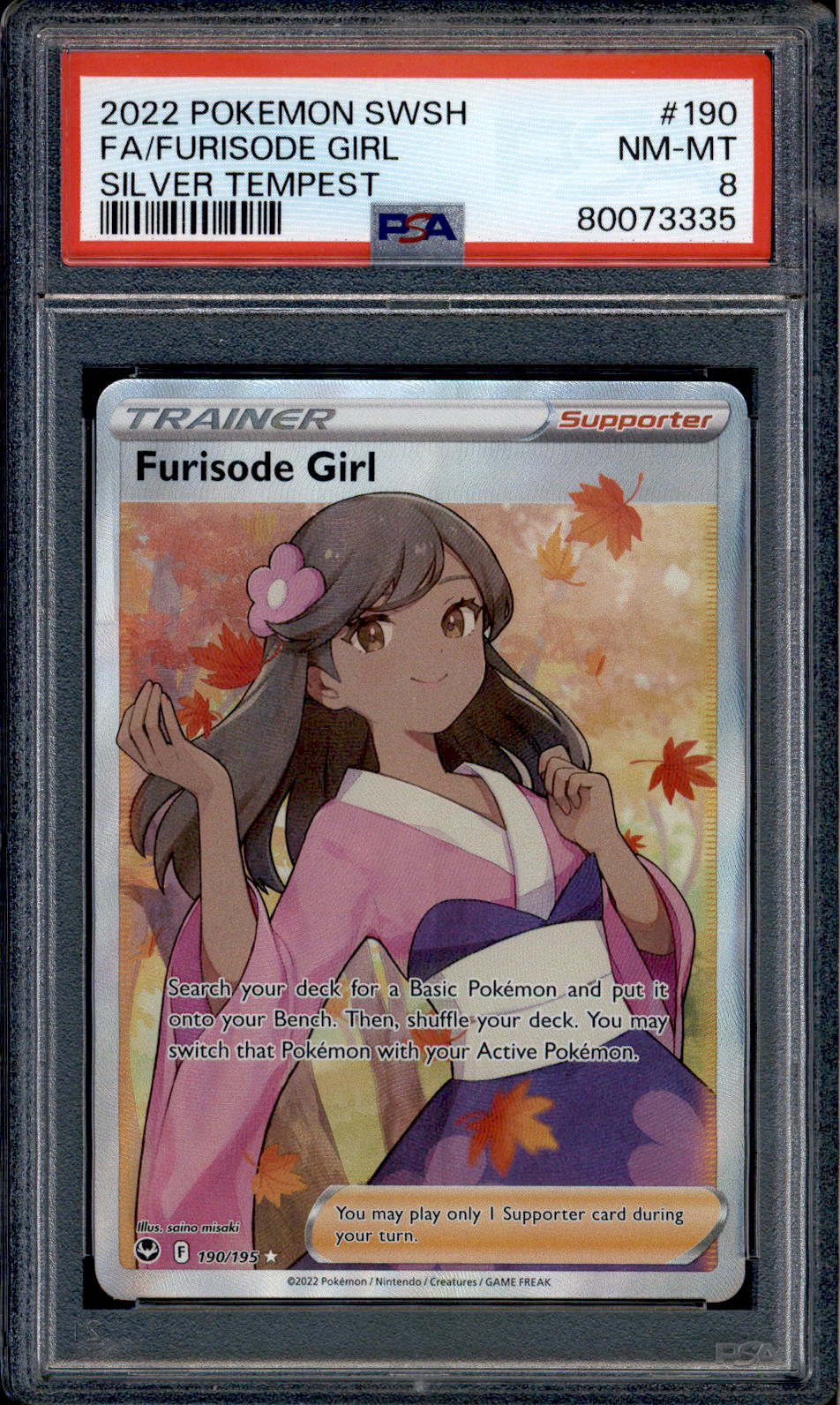 Furisode Girl - 190/195 - PSA 8 - Full Art - Silver Tempest - Pokemon - 73335 VendorPSA Share WhatsApp Deel Tweet Pin it Messenger Email Furisode Girl - 190/195 - PSA 8 - Full Art - Silver Tempest - Pokemon - 73335 VendorPSA Share WhatsApp Deel Tweet Pin it Messenger Email Product form Condition: PSA Graded Out of stock $15.00 Quantity Out of stock This item is a recurring or deferred purchase. By continuing, I agree to the cancellation policy and authorize you to charge my payment method at the prices, frequency and dates listed on this page until my order is fulfilled or I cancel, if permitted.