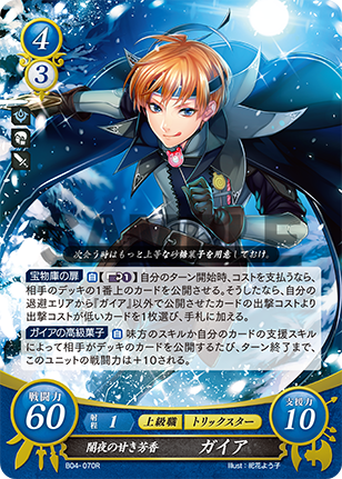 Gaius' High-Quality Sweets Each time your opponent reveals a card from their Deck as the result of an ally's skill or your Support Skill, until the end of the turn, this unit gains +10 attack. |