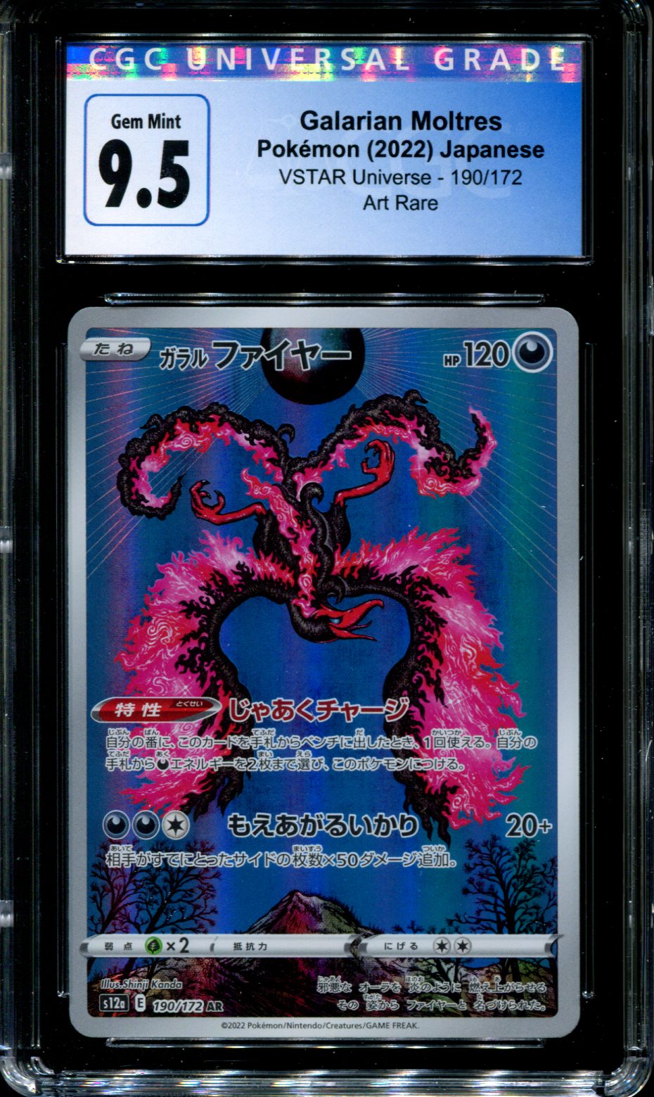 Galarian Moltres - 190/172 - CGC 9.5 - Art Rare - VSTAR Universe - Pokemon - 56259 VendorCGC Share WhatsApp Deel Tweet Pin it Messenger Email Galarian Moltres - 190/172 - CGC 9.5 - Art Rare - VSTAR Universe - Pokemon - 56259 VendorCGC Share WhatsApp Deel Tweet Pin it Messenger Email Product form Condition: CGC Graded Out of stock $20.00 Quantity Out of stock This item is a recurring or deferred purchase. By continuing, I agree to the cancellation policy and authorize you to charge my payment method at the prices, frequency and dates listed on this page until my order is fulfilled or I cancel, if permitted.