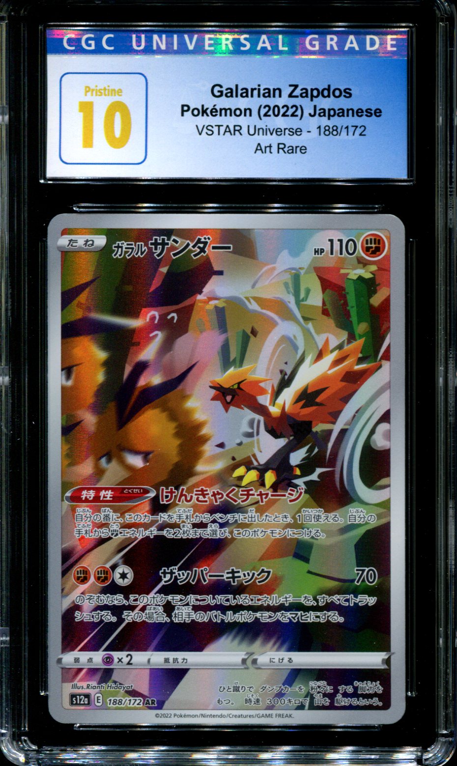 Galarian Zapdos - 188/172 - CGC 10 - Art Rare - VSTAR Universe - Pokemon - 56144 VendorCGC Share WhatsApp Deel Tweet Pin it Messenger Email Galarian Zapdos - 188/172 - CGC 10 - Art Rare - VSTAR Universe - Pokemon - 56144 VendorCGC Share WhatsApp Deel Tweet Pin it Messenger Email Product form Condition: CGC Graded Out of stock $25.00 Quantity Out of stock This item is a recurring or deferred purchase. By continuing, I agree to the cancellation policy and authorize you to charge my payment method at the prices, frequency and dates listed on this page until my order is fulfilled or I cancel, if permitted.