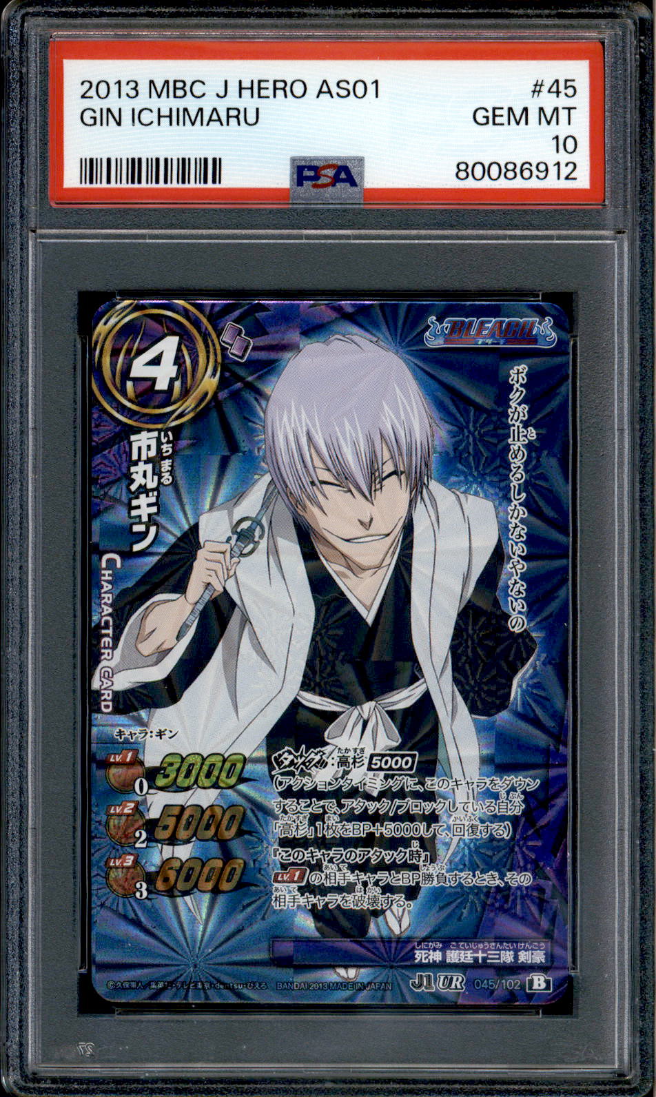 Gin Ichimaru - 045/102 - PSA 10 - Ultra Rare - Miracle Battle Carddass - Bleach - 86912
