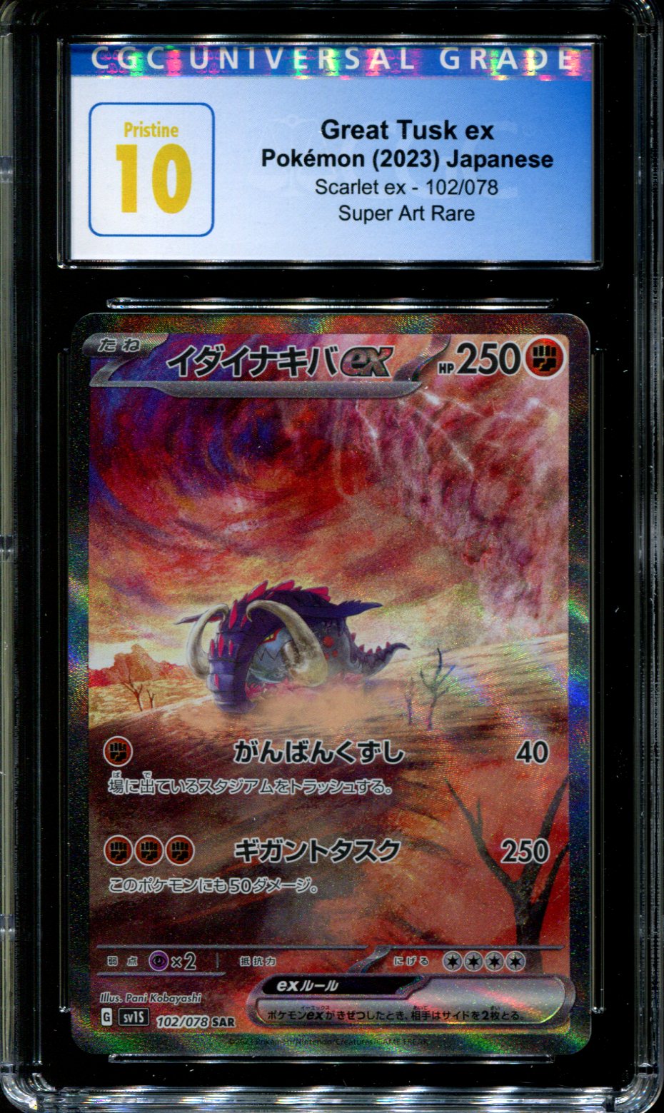 Great Tusk ex - 102/078 - CGC 10 - Super Art Rare - Scarlet ex - Pokemon - 58249 VendorCGC Share WhatsApp Deel Tweet Pin it Messenger Email Great Tusk ex - 102/078 - CGC 10 - Super Art Rare - Scarlet ex - Pokemon - 58249 VendorCGC Share WhatsApp Deel Tweet Pin it Messenger Email Product form Condition: CGC Graded Out of stock $60.00 Quantity Out of stock This item is a recurring or deferred purchase. By continuing, I agree to the cancellation policy and authorize you to charge my payment method at the prices, frequency and dates listed on this page until my order is fulfilled or I cancel, if permitted.