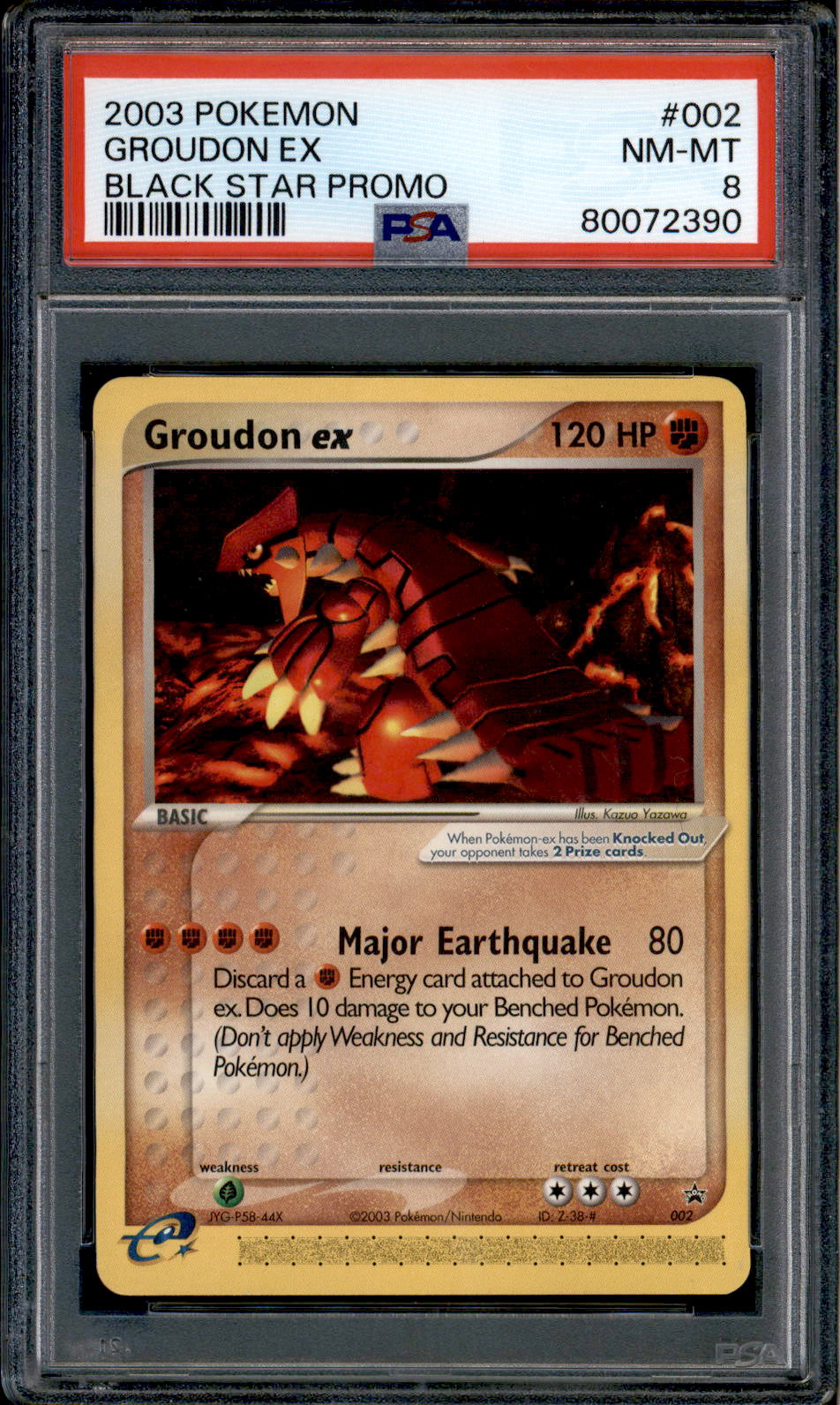 Groudon ex - 002 - PSA 8 - Black Star - Promo - Pokemon - 72390 VendorPSA Share WhatsApp Deel Tweet Pin it Messenger Email Groudon ex - 002 - PSA 8 - Black Star - Promo - Pokemon - 72390 VendorPSA Share WhatsApp Deel Tweet Pin it Messenger Email Product form Condition: PSA Graded Out of stock $30.00 Quantity Out of stock This item is a recurring or deferred purchase. By continuing, I agree to the cancellation policy and authorize you to charge my payment method at the prices, frequency and dates listed on this page until my order is fulfilled or I cancel, if permitted.