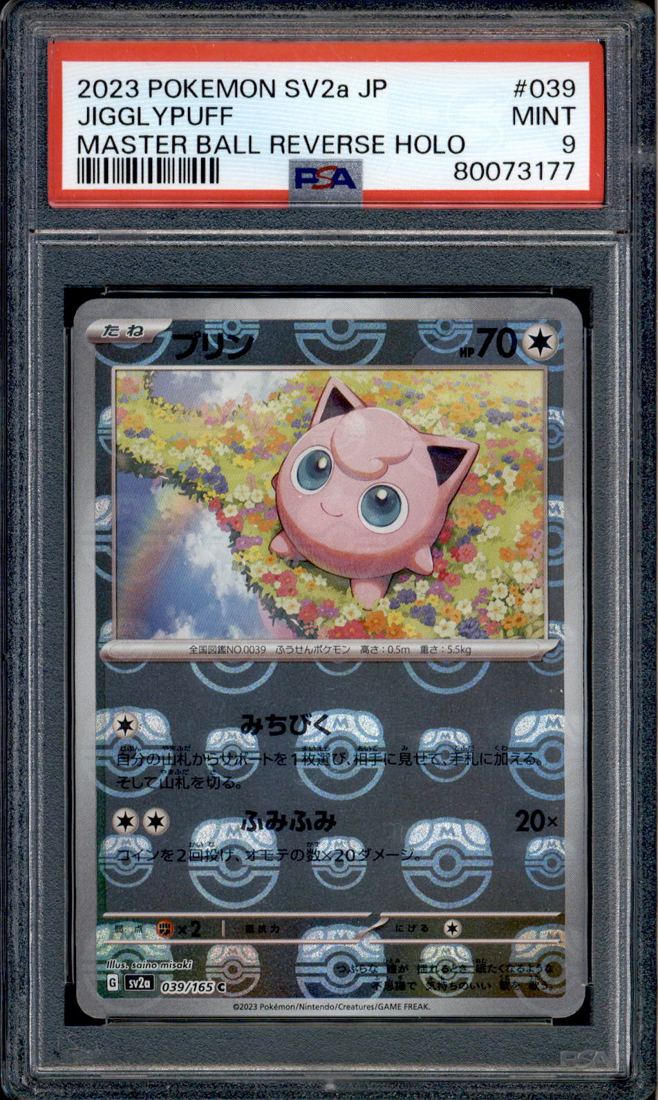 Jigglypuff - 039/165 - PSA 9 - Master Ball Reverse - 151 - Pokemon - 73177 VendorPSA Share WhatsApp Deel Tweet Pin it Messenger Email Jigglypuff - 039/165 - PSA 9 - Master Ball Reverse - 151 - Pokemon - 73177 VendorPSA Share WhatsApp Deel Tweet Pin it Messenger Email Product form Condition: PSA Graded Out of stock $30.00 Quantity Out of stock This item is a recurring or deferred purchase. By continuing, I agree to the cancellation policy and authorize you to charge my payment method at the prices, frequency and dates listed on this page until my order is fulfilled or I cancel, if permitted.