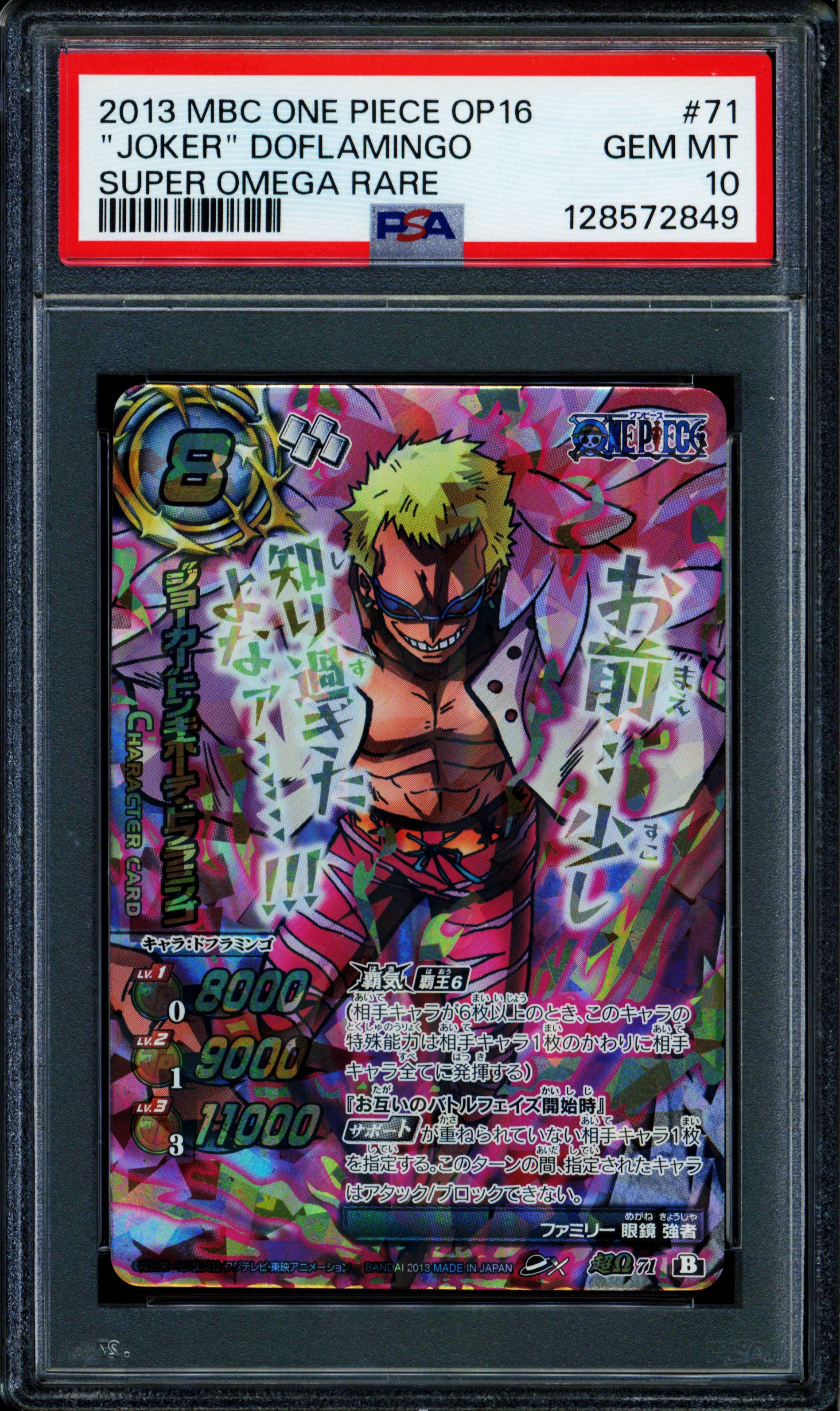 Joker Doflamingo - 71 OP16 - PSA 10 - Super Omega Rare - Japanese - Carddass - One Piece - 72849