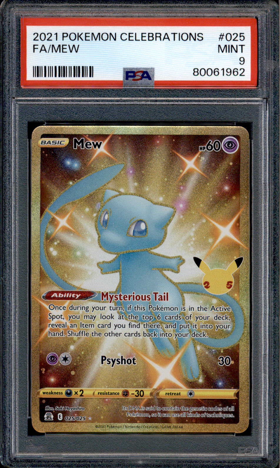 Mew - 025/025 - PSA 9 - Secret Rare - Celebrations - Pokemon - 61962 VendorPSA Share WhatsApp Deel Tweet Pin it Messenger Email Mew - 025/025 - PSA 9 - Secret Rare - Celebrations - Pokemon - 61962 VendorPSA Share WhatsApp Deel Tweet Pin it Messenger Email Product form Condition: PSA Graded Out of stock $35.00 Quantity Out of stock This item is a recurring or deferred purchase. By continuing, I agree to the cancellation policy and authorize you to charge my payment method at the prices, frequency and dates listed on this page until my order is fulfilled or I cancel, if permitted.