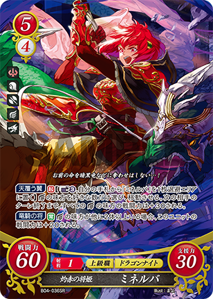 Eclipsing Wings [ , Send 1 "Minerva" card from your hand to the Retreat Area] Choose as many allies as you like and move them. Also, until the end of your opponent's next turn, all allies gain +30 attack. |