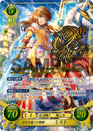 Spring-Breeze Florete If you have 2 or more other allies, this unit acquires range 1-2, and you may use "Warm Singing" without paying the cost. |