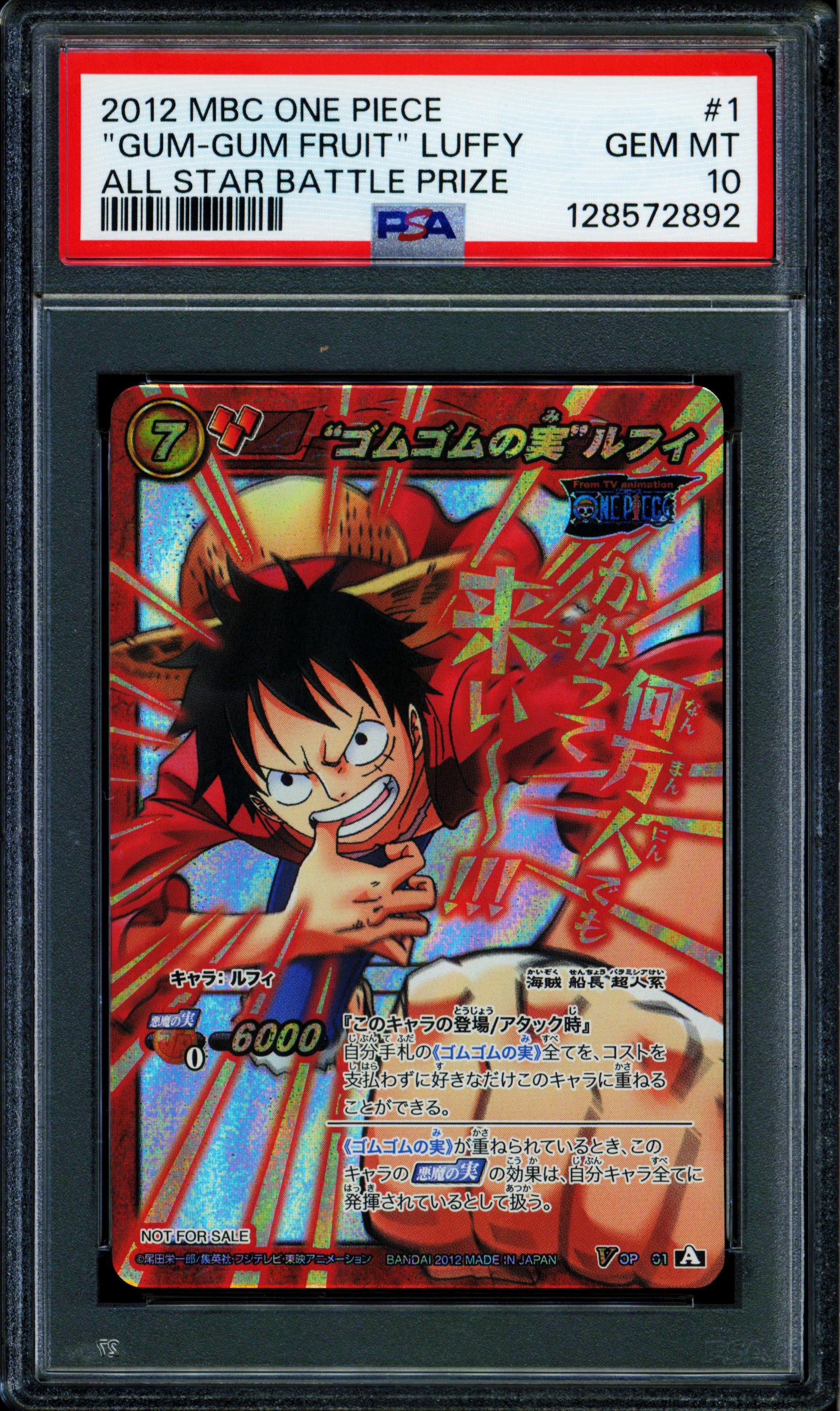 Gum Gum Fruit Luffy - 1 - PSA 10 - All Star Battle Prize Card - Japanese - Carddass - One Piece - 72892