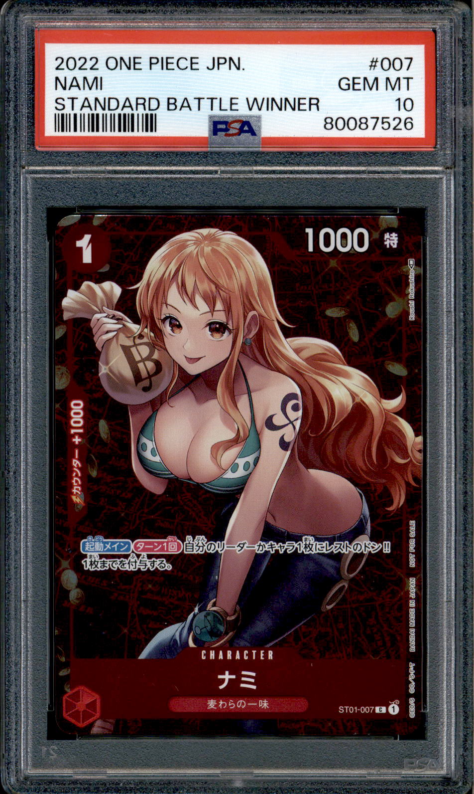 Nami - ST01-007 - PSA 10 - Battle Winner - Promo - One Piece - 87526 VendorPSA Share WhatsApp Deel Tweet Pin it Messenger Email Nami - ST01-007 - PSA 10 - Battle Winner - Promo - One Piece - 87526 VendorPSA Share WhatsApp Deel Tweet Pin it Messenger Email Product form Condition: PSA Graded Out of stock $125.00 Quantity Out of stock This item is a recurring or deferred purchase. By continuing, I agree to the cancellation policy and authorize you to charge my payment method at the prices, frequency and dates listed on this page until my order is fulfilled or I cancel, if permitted.