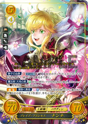 Shadow-Rending Brave Princess When you place this card in your Bond Area, you may choose 1 of your Bond cards and add it to your hand. |