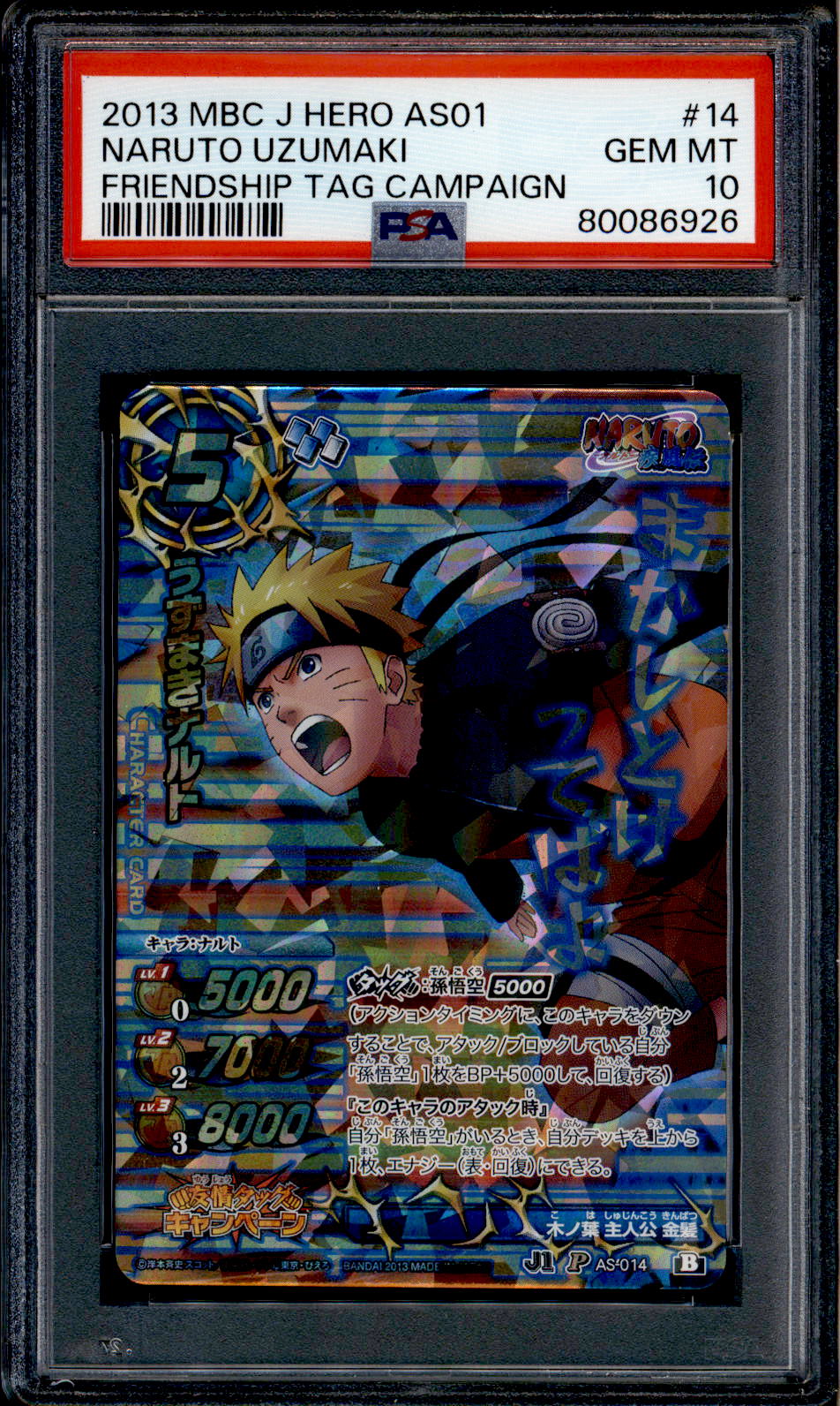 Naruto Uzumaki - AS-014 - PSA 10 - Promo - Miracle Battle Carddass - Naruto - 86926 VendorPSA Share WhatsApp Deel Tweet Pin it Messenger Email Naruto Uzumaki - AS-014 - PSA 10 - Promo - Miracle Battle Carddass - Naruto - 86926 VendorPSA Share WhatsApp Deel Tweet Pin it Messenger Email Product form Condition: PSA Graded Out of stock $80.00 Quantity Out of stock This item is a recurring or deferred purchase. By continuing, I agree to the cancellation policy and authorize you to charge my payment method at the prices, frequency and dates listed on this page until my order is fulfilled or I cancel, if permitted.