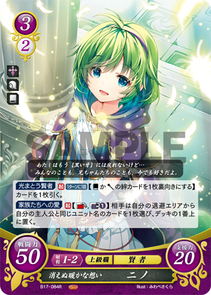 Nino: Indelible Tender Love - B17-084R - Fire Emblem Cipher 17 VendorIntelligent Systems Share WhatsApp Deel Tweet Pin it Messenger Email Nino: Indelible Tender Love - B17-084R - Fire Emblem Cipher 17 VendorIntelligent Systems Share WhatsApp Deel Tweet Pin it Messenger Email Product form Condition: Near Mint Out of stock $1.99 Quantity Out of stock This item is a recurring or deferred purchase. By continuing, I agree to the cancellation policy and authorize you to charge my payment method at the prices, frequency and dates listed on this page until my order is fulfilled or I cancel, if permitted.