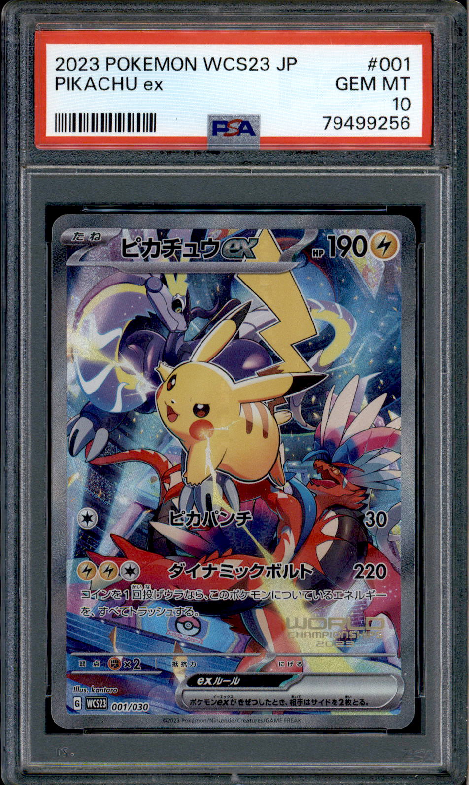 Pikachu ex - 001/030 - PSA 10 - Yokohama 2023 - WCS23 - Pokemon - 99256 VendorPSA Share WhatsApp Deel Tweet Pin it Messenger Email Pikachu ex - 001/030 - PSA 10 - Yokohama 2023 - WCS23 - Pokemon - 99256 VendorPSA Share WhatsApp Deel Tweet Pin it Messenger Email Product form Condition: PSA Graded Out of stock $300.00 Quantity Out of stock This item is a recurring or deferred purchase. By continuing, I agree to the cancellation policy and authorize you to charge my payment method at the prices, frequency and dates listed on this page until my order is fulfilled or I cancel, if permitted.