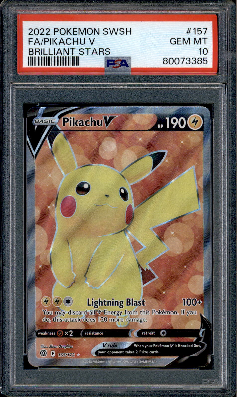 Pikachu V - 157/172 - PSA 10 - Full Art - Brilliant Stars - Pokemon - 73385 VendorPSA Share WhatsApp Deel Tweet Pin it Messenger Email Pikachu V - 157/172 - PSA 10 - Full Art - Brilliant Stars - Pokemon - 73385 VendorPSA Share WhatsApp Deel Tweet Pin it Messenger Email Product form Condition: PSA Graded Out of stock $40.00 Quantity Out of stock This item is a recurring or deferred purchase. By continuing, I agree to the cancellation policy and authorize you to charge my payment method at the prices, frequency and dates listed on this page until my order is fulfilled or I cancel, if permitted.