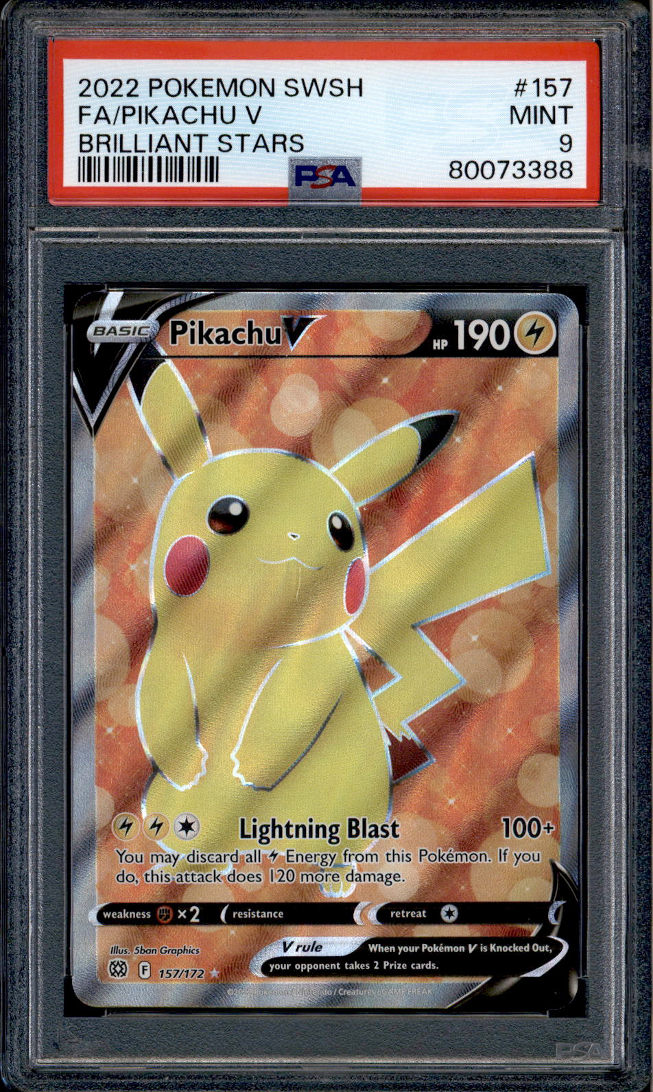 Pikachu V - 157/172 - PSA 9 - Full Art - Brilliant Stars - Pokemon - 73388 VendorPSA Share WhatsApp Deel Tweet Pin it Messenger Email Pikachu V - 157/172 - PSA 9 - Full Art - Brilliant Stars - Pokemon - 73388 VendorPSA Share WhatsApp Deel Tweet Pin it Messenger Email Product form Condition: PSA Graded Out of stock $20.00 Quantity Out of stock This item is a recurring or deferred purchase. By continuing, I agree to the cancellation policy and authorize you to charge my payment method at the prices, frequency and dates listed on this page until my order is fulfilled or I cancel, if permitted.