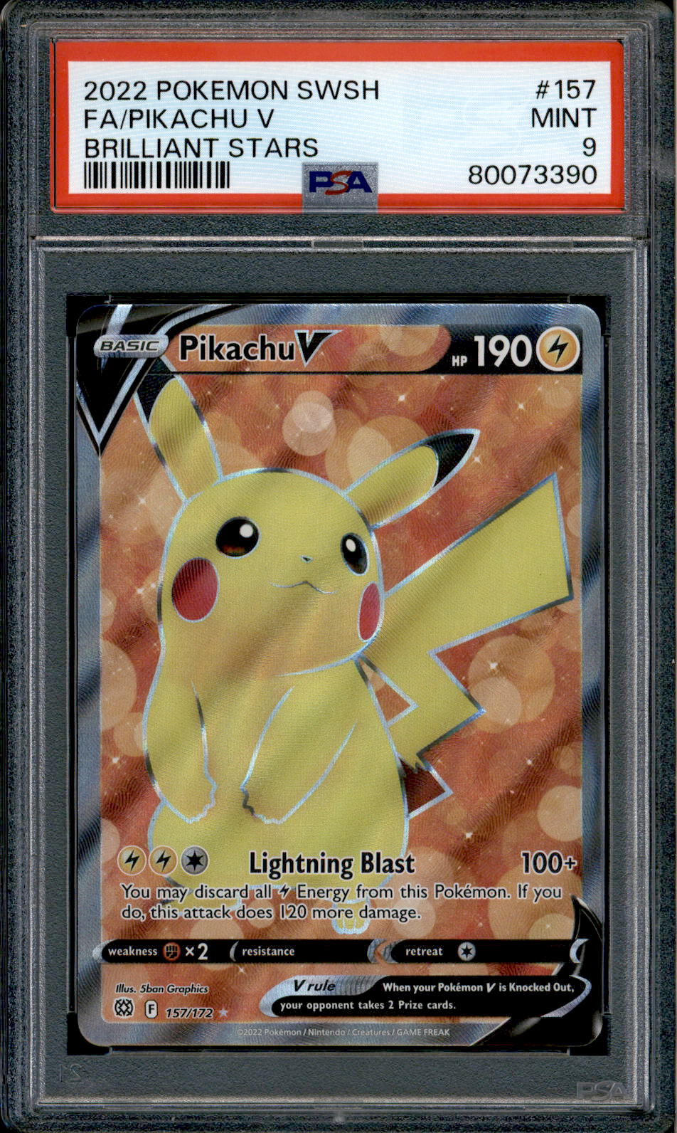 Pikachu V - 157/172 - PSA 9 - Full Art - Brilliant Stars - Pokemon - 73390 VendorPSA Share WhatsApp Deel Tweet Pin it Messenger Email Pikachu V - 157/172 - PSA 9 - Full Art - Brilliant Stars - Pokemon - 73390 VendorPSA Share WhatsApp Deel Tweet Pin it Messenger Email Product form Condition: PSA Graded Out of stock $20.00 Quantity Out of stock This item is a recurring or deferred purchase. By continuing, I agree to the cancellation policy and authorize you to charge my payment method at the prices, frequency and dates listed on this page until my order is fulfilled or I cancel, if permitted.