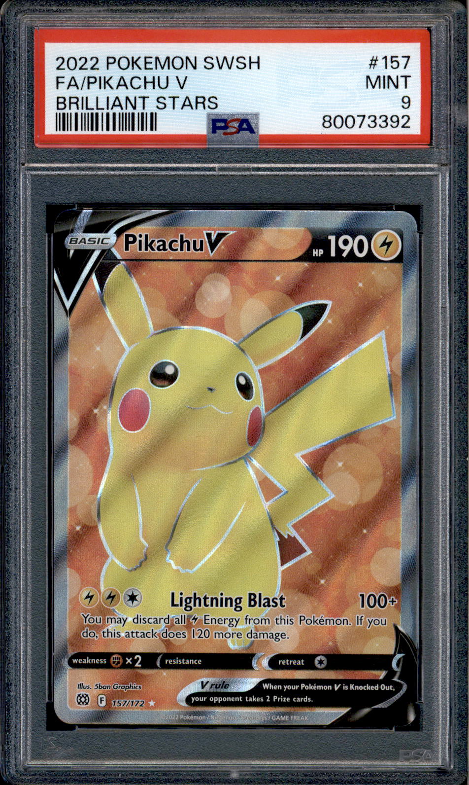 Pikachu V - 157/172 - PSA 9 - Full Art - Brilliant Stars - Pokemon - 73392 VendorPSA Share WhatsApp Deel Tweet Pin it Messenger Email Pikachu V - 157/172 - PSA 9 - Full Art - Brilliant Stars - Pokemon - 73392 VendorPSA Share WhatsApp Deel Tweet Pin it Messenger Email Product form Condition: PSA Graded Out of stock $20.00 Quantity Out of stock This item is a recurring or deferred purchase. By continuing, I agree to the cancellation policy and authorize you to charge my payment method at the prices, frequency and dates listed on this page until my order is fulfilled or I cancel, if permitted.