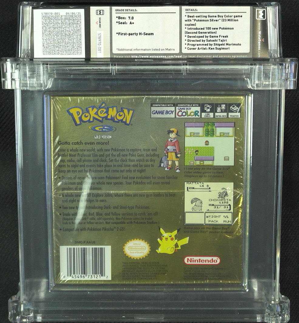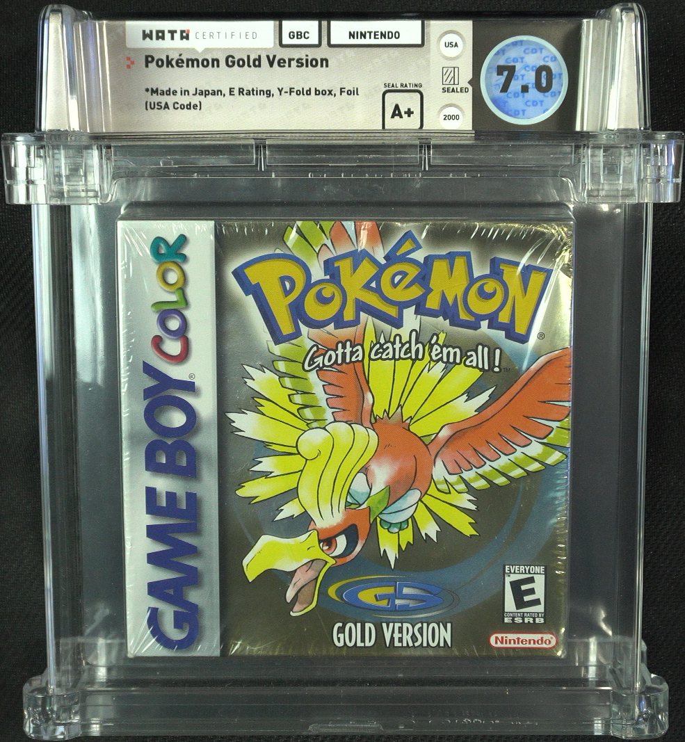 Pokemon Gold - Gameboy Color - WATA 7.0 - A+ - GBC - Brand New Sealed VendorWata Share WhatsApp Deel Tweet Pin it Messenger Email Pokemon Gold - Gameboy Color - WATA 7.0 - A+ - GBC - Brand New Sealed VendorWata Share WhatsApp Deel Tweet Pin it Messenger Email Product form Condition: Wata Graded Out of stock $1,500.00 Quantity Out of stock This item is a recurring or deferred purchase. By continuing, I agree to the cancellation policy and authorize you to charge my payment method at the prices, frequency and dates listed on this page until my order is fulfilled or I cancel, if permitted.