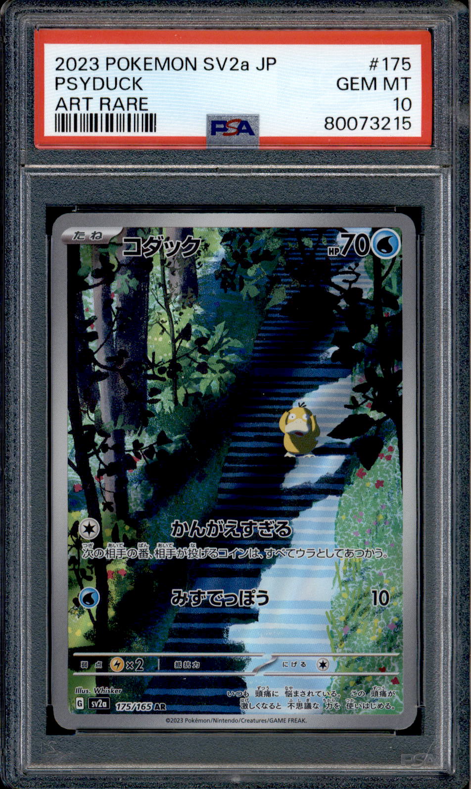 Psyduck - 175/165 - PSA 10 - AR - 151 - Pokemon - 73215 VendorPSA Share WhatsApp Deel Tweet Pin it Messenger Email Psyduck - 175/165 - PSA 10 - AR - 151 - Pokemon - 73215 VendorPSA Share WhatsApp Deel Tweet Pin it Messenger Email Product form Condition: PSA Graded Out of stock $30.00 Quantity Out of stock This item is a recurring or deferred purchase. By continuing, I agree to the cancellation policy and authorize you to charge my payment method at the prices, frequency and dates listed on this page until my order is fulfilled or I cancel, if permitted.