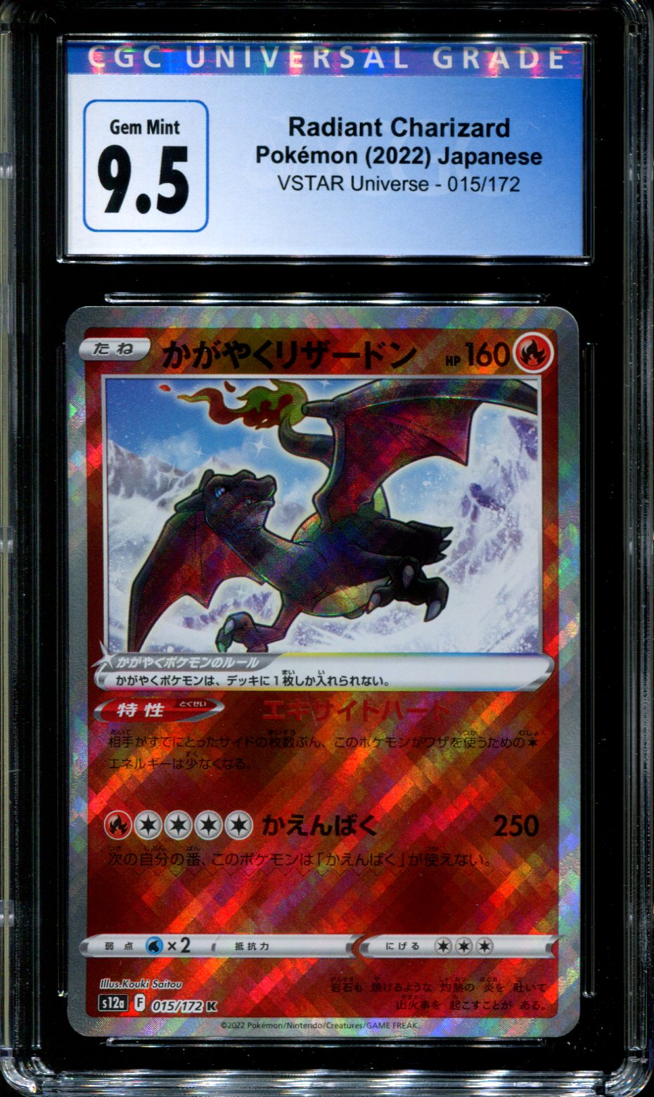 Radiant Charizard - 015/172 - CGC 9.5 - Ultra Rare - Vstar Universe - Pokemon - 57295 VendorCGC Share WhatsApp Deel Tweet Pin it Messenger Email Radiant Charizard - 015/172 - CGC 9.5 - Ultra Rare - Vstar Universe - Pokemon - 57295 VendorCGC Share WhatsApp Deel Tweet Pin it Messenger Email Product form Condition: CGC Graded Out of stock $20.00 Quantity Out of stock This item is a recurring or deferred purchase. By continuing, I agree to the cancellation policy and authorize you to charge my payment method at the prices, frequency and dates listed on this page until my order is fulfilled or I cancel, if permitted.