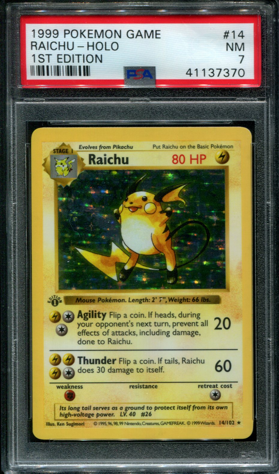 Raichu 1st Edition - 14/102 - PSA 7 NM - Base Set Shadowless - 37370 VendorPSA Share WhatsApp Deel Tweet Pin it Messenger Email Raichu 1st Edition - 14/102 - PSA 7 NM - Base Set Shadowless - 37370 VendorPSA Share WhatsApp Deel Tweet Pin it Messenger Email Product form Condition: PSA Graded Out of stock $500.00 Quantity Out of stock This item is a recurring or deferred purchase. By continuing, I agree to the cancellation policy and authorize you to charge my payment method at the prices, frequency and dates listed on this page until my order is fulfilled or I cancel, if permitted.