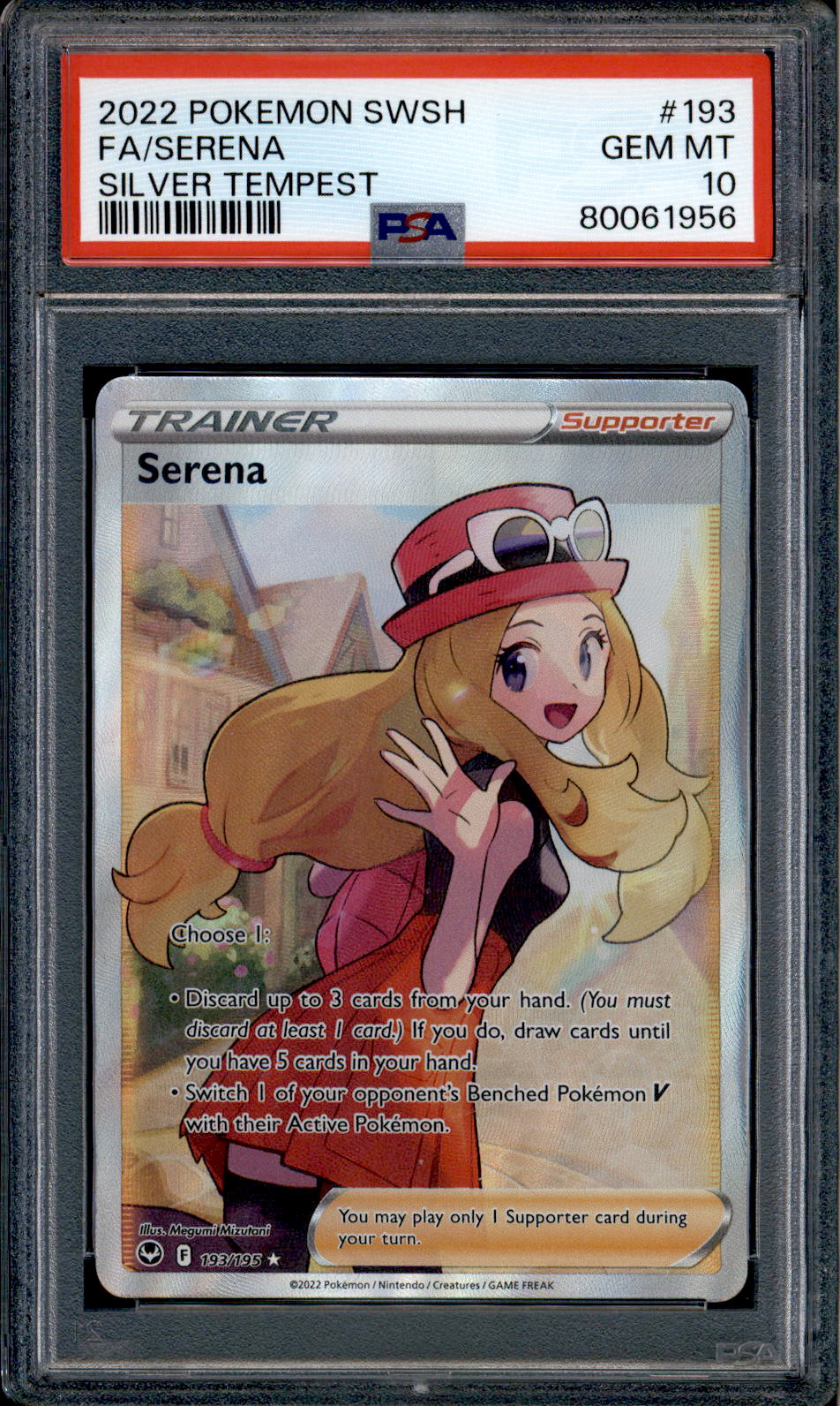 Serena - 193/195 - PSA 10 - Full Art - Silver Tempest - Pokemon - 61956 VendorPSA Share WhatsApp Deel Tweet Pin it Messenger Email Serena - 193/195 - PSA 10 - Full Art - Silver Tempest - Pokemon - 61956 VendorPSA Share WhatsApp Deel Tweet Pin it Messenger Email Product form Condition: PSA Graded Out of stock $60.00 Quantity Out of stock This item is a recurring or deferred purchase. By continuing, I agree to the cancellation policy and authorize you to charge my payment method at the prices, frequency and dates listed on this page until my order is fulfilled or I cancel, if permitted.