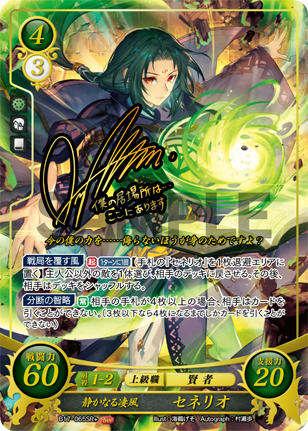 Table-Turning Winds [Send 1 "Soren" from your hand to the Retreat Area] Choose 1 non-Main Character enemy, and return it to your opponent's Deck. Then, your opponent shuffles their Deck. |