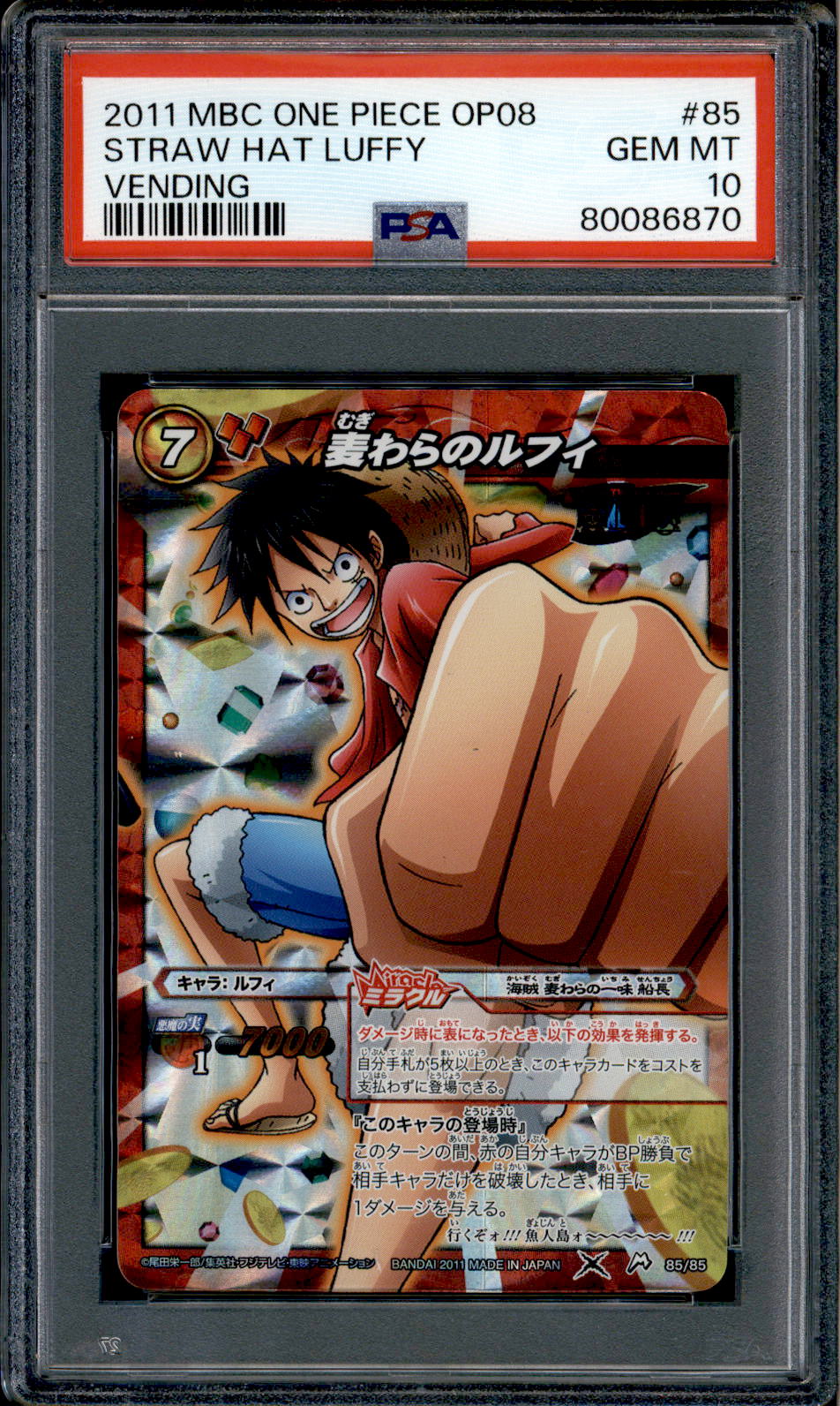 Straw Hat Luffy - 85/85 - PSA 10 - Miracle Rare - Miracle Battle Carddass - One Piece - 86870
