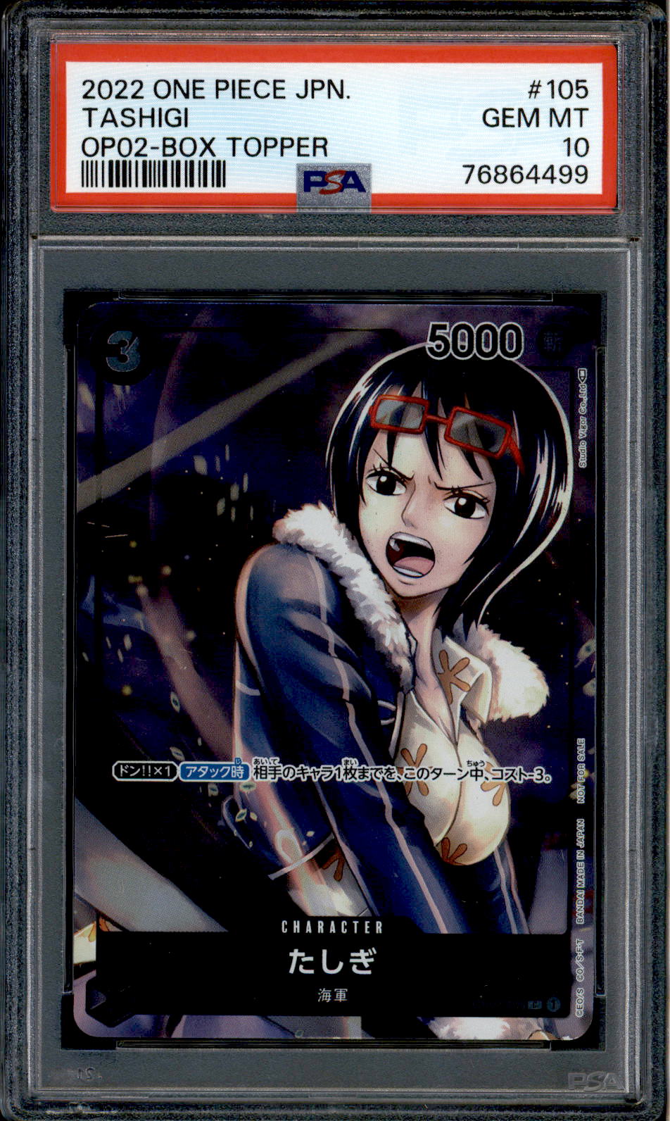 Tashigi - OP02-105 - PSA 10 - Box Japanese - OP02 - One Piece - 64499 VendorPSA Share WhatsApp Deel Tweet Pin it Messenger Email Last stock! Tashigi - OP02-105 - PSA 10 - Box Japanese - OP02 - One Piece - 64499 VendorPSA Share WhatsApp Deel Tweet Pin it Messenger Email Product form Condition: PSA Graded 1 in stock $25.00 Quantity Add to cart This item is a recurring or deferred purchase. By continuing, I agree to the cancellation policy and authorize you to charge my payment method at the prices, frequency and dates listed on this page until my order is fulfilled or I cancel, if permitted.